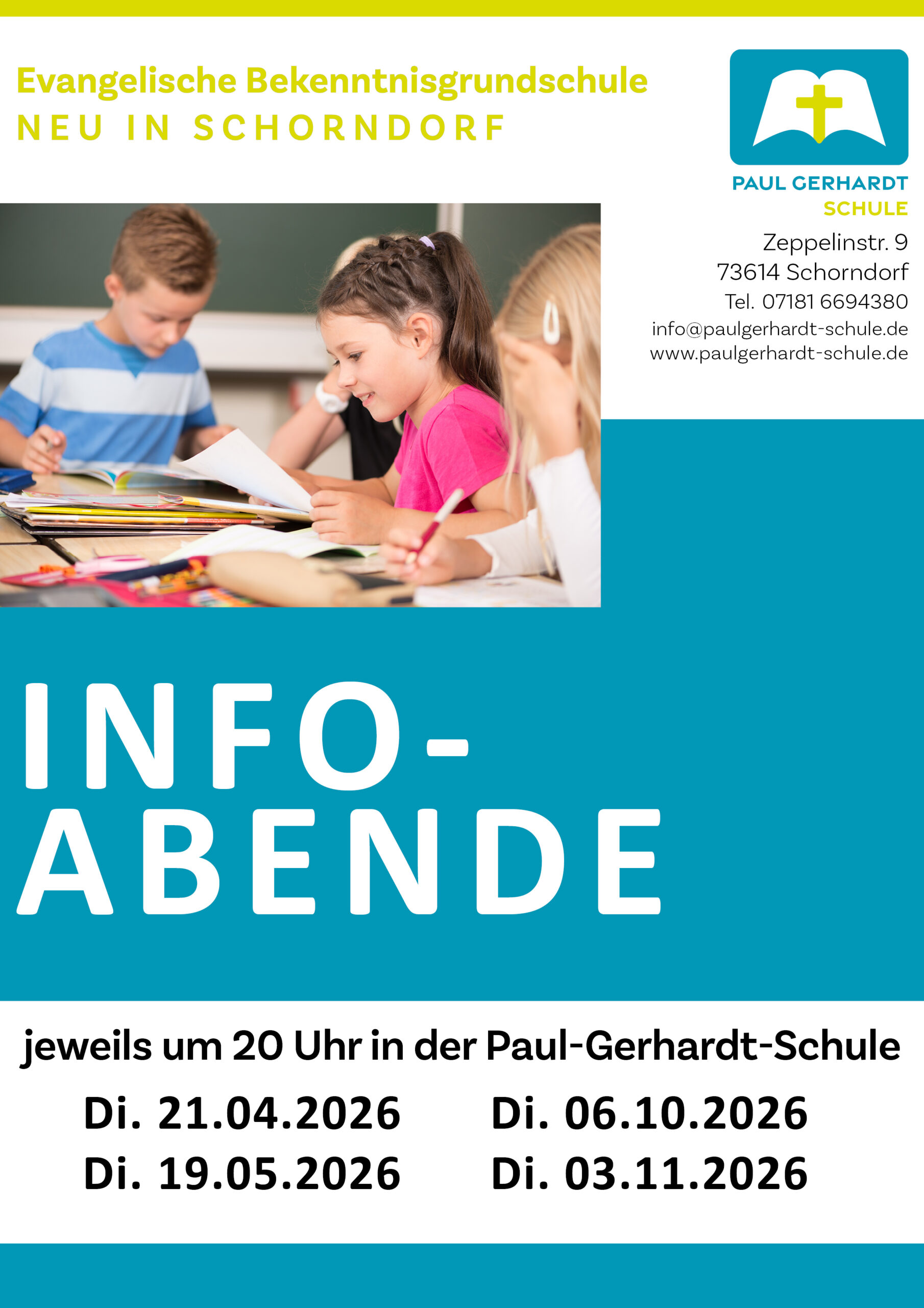 Wir laden während der Schulzeit zum Gebet für die Paul-Gerhardt-Schule ein. Wir treffen uns immer am ersten Sonntag im Monat von 19:15 – ca. 20:00 Uhr im großen Saal der Schule.